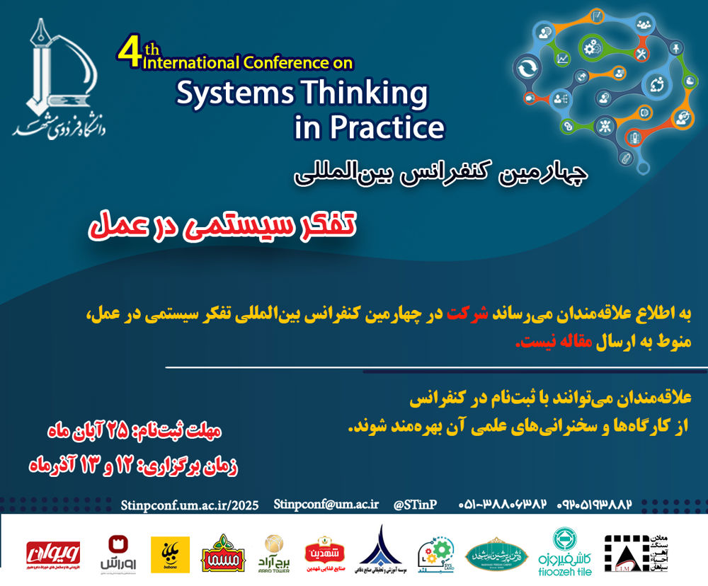 آدرس: مشهد، دانشگاه فردوسی مشهد- دانشکده علوم اداری و اقتصادی، دبیرخانه کنفرانس تفکر سیستمی در عمل. کدپستی: ۹۱۷۷۹۴۸۹۵۱